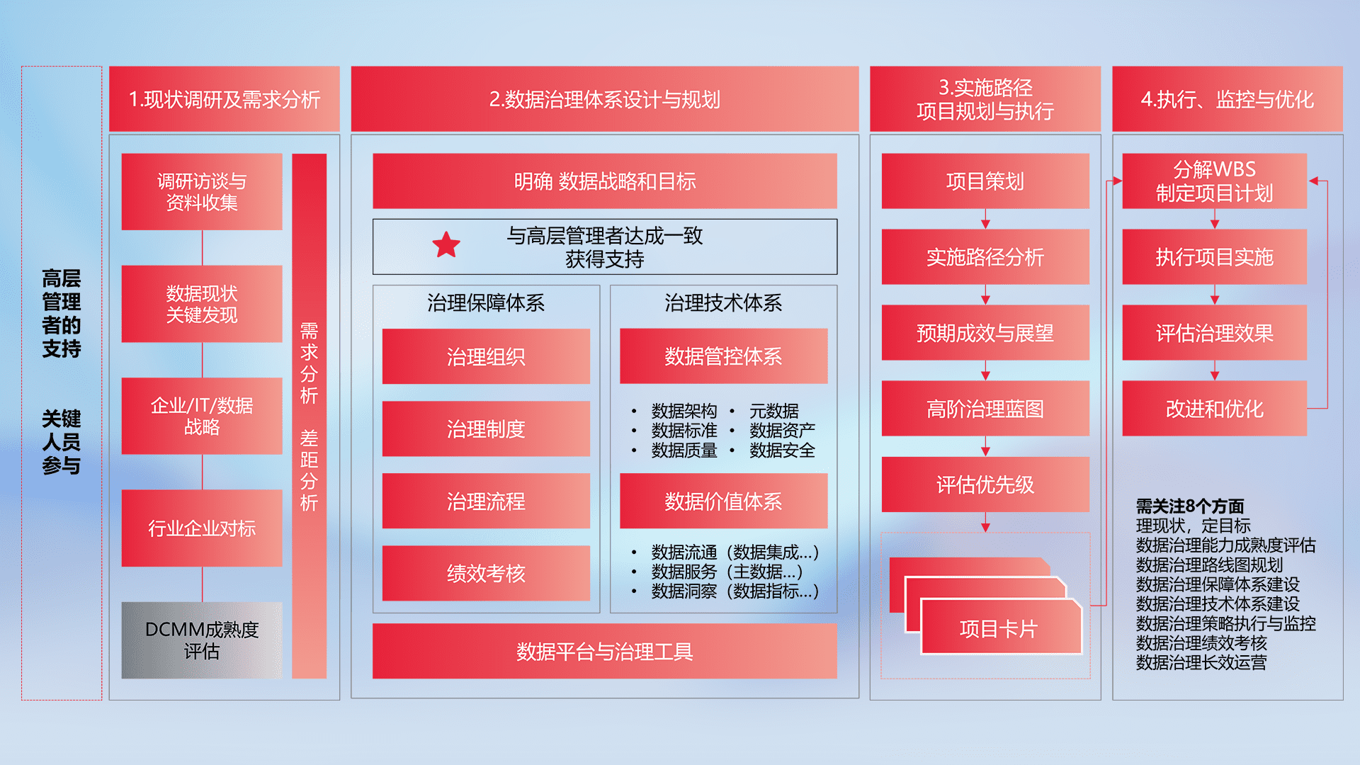 制定并执行统一的数据标准,,,,规范数据定义和格式,,,,消除冗余和不一致性,,,,实现跨部门和跨系统的数据一致性,,为企业提供标准化的数据基础。。